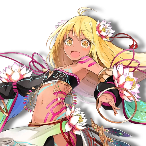 Ange is a young girl from a musical band called Mirage in the Desert Zone. She has the special power to heal people through dance. You can recognize her by her tanned skin. She looks younger than she is, maybe due to her physical build. In battle, she charms her opponents through her nimble dance art.