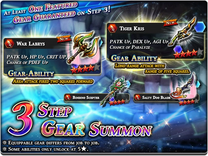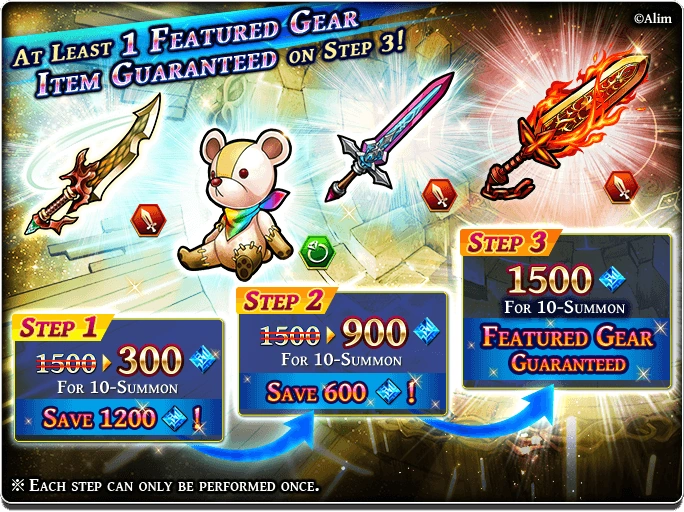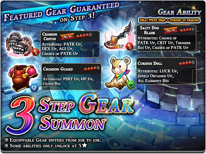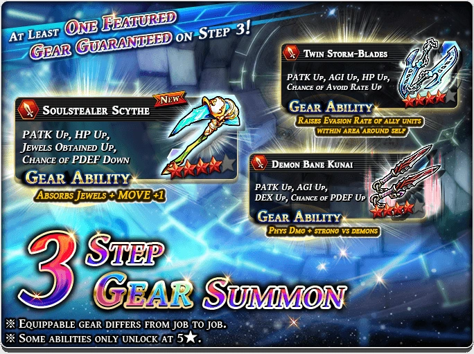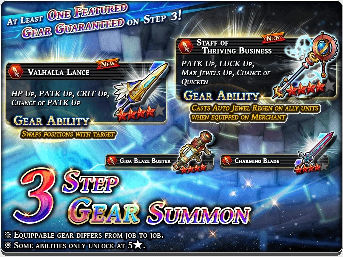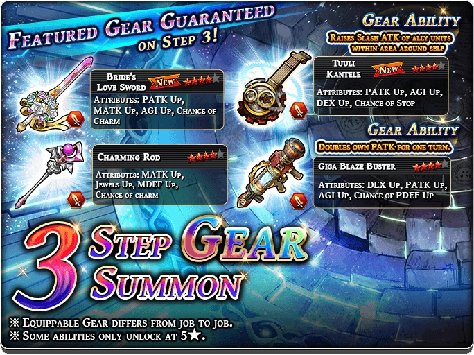 Gear banners also has Grand Summon which featured some very useful 4* gears. These banners start from 900 Paid Gems.