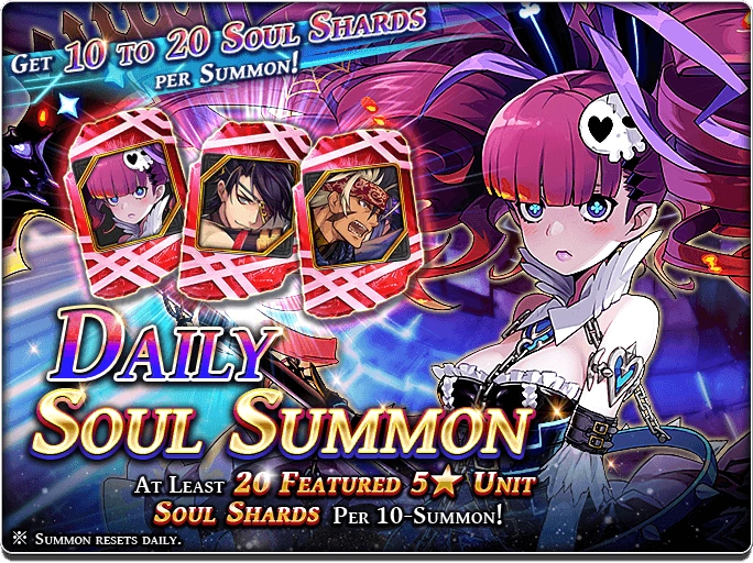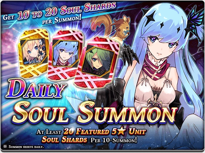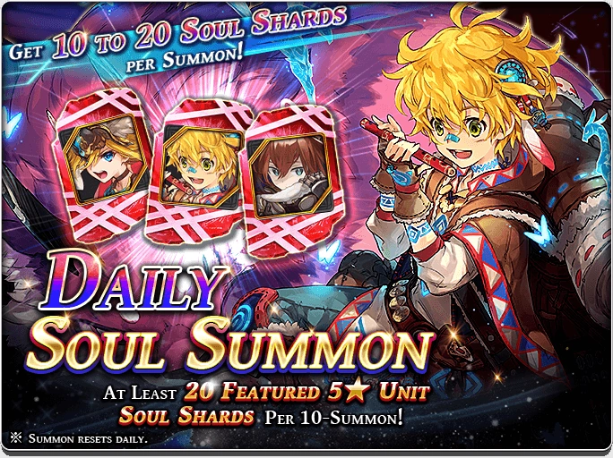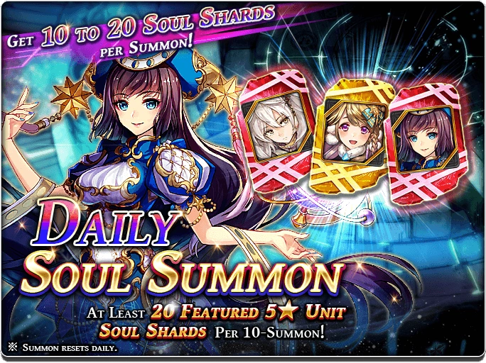 You can summon Units or Character Shards in the rare daily summon banner (1/day).