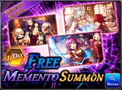 Like Unit Grand summon banner there is Grand Memento summon banner as well. These banners also use between 1500 to 2500 Paid Gems. Depending on the gems requirement, the banner could be 10x summon feature 5* mementos (usually, 1 guaranteed) with increase rate for 5* or all 5* mementos. All 5* mementos banner are mostly desired as this banner considered highly gems efficient.