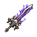 A greatsword, decorated in dark colors and adorned with a horned skull. Despite its heftiness, for an experienced dark knight it is the perfect weight. When swung it is said to be able to cleave through darkness itself.