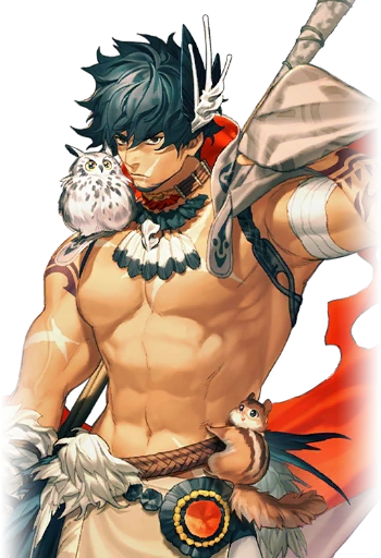 Yuto, a heavily built man of few words, is a tree surgeon who lives in a mountainous area of the Saga Region. He is able to read the flow of Alchemia in trees and plants in order to identify and cure parts that have become infected. He is loved by the many creatures of the forest and mountains; in particular, Kiva the owl, Sopo the squirrel, and Hieno the fox are like family to him.